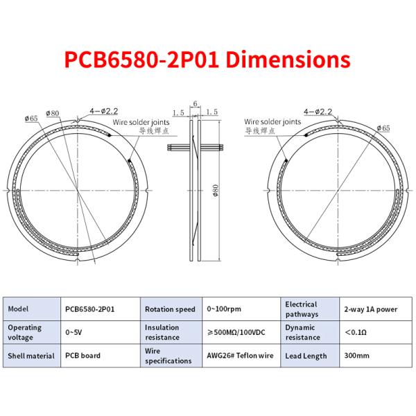 65mm Diameter Low Power PCB Slip Ring 5V 2 Channels 1A For Precision Rotating Parts Images |
